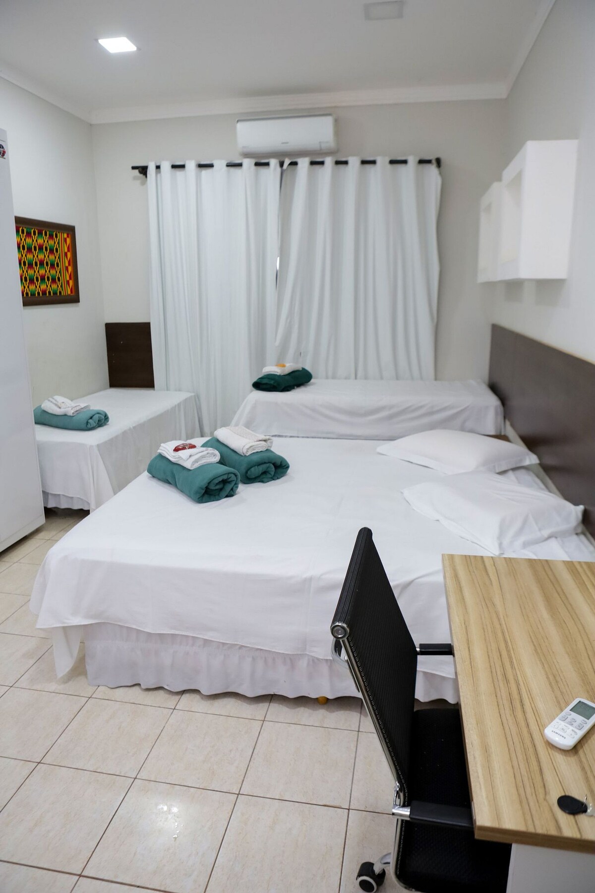 Aqui, proporcionamos um atendimento excepcional e um ambiente acolhedor. Nossos apartamentos são cuidadosamente equipados, incluindo: - Cama de casal box - Cama de solteiro box - Ar condicionado - Wi-Fi gratuito - Geladeira - Jogo de cama - Jogo de banho - Kit de higiene pessoal - Guarda-roupa - Opção de serviço de lavanderia - Serviço de limpeza incluso Esperamos ansiosos por sua visita!