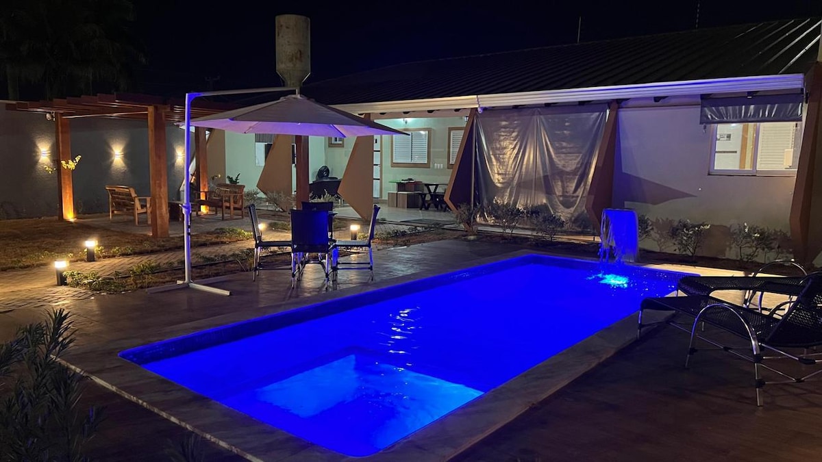 Chácara localizada a cerca de 38 km de Cuiabá, com acesso totalmente asfaltado, na região do Distrito de Aguaçu. Reúna família e amigos nesta chácara ampla e completa, perfeita para momentos de lazer e descanso. O espaço conta com piscina, quiosques, churrasqueiras e quartos com ar-condicionado, acomodando grupos com conforto. Nos fundos da propriedade passa um rio de águas cristalinas, trazendo ainda mais contato com a natureza e um ambiente ideal para relaxar.
