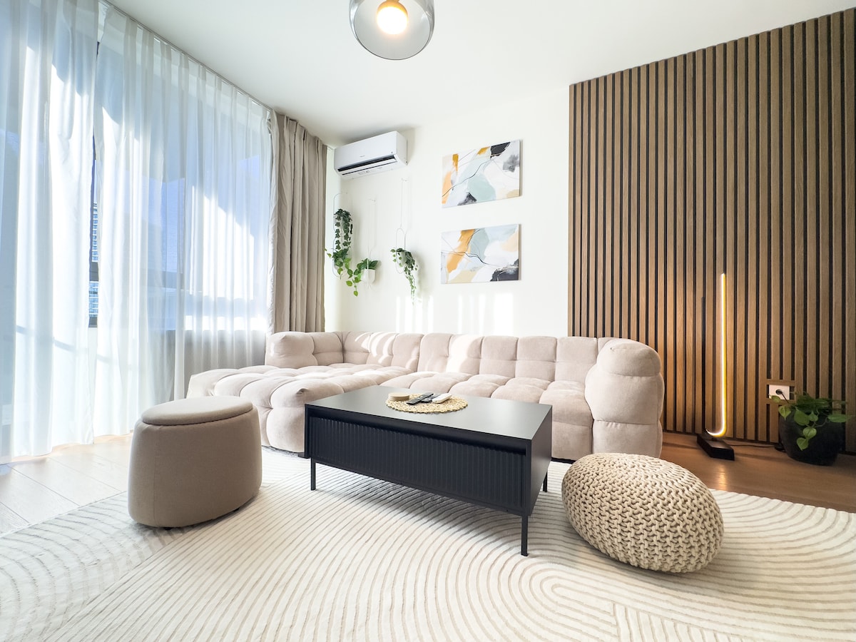 平均评分 5 分(满分 5 分),共 24 条评价宽敞现代5*加大双人床和沙发床,带车库停车位