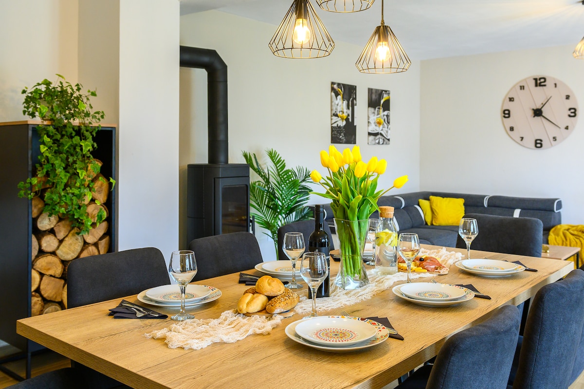 Kućica je prvenstveno bila namijenjena za uživanje obitelji u njoj i ugošćavanje prijatelja uz kamin,dobru hranu,vino i vatricu. Zato i ima veeeliki stol i klupe. Uredili smo ju po svom guštu, sav namještaj izrađen je od drva. Pri uređenju se nismo vodili time da sve mora biti usklađeno i da paše već time da nama bude lijepo,ugodno i funkcionalno. Kako smo s vremenom došli na ideju da bismo mogli iznajmljivati, nadamo se da će i svim gostima koji se zateknu u njoj biti isto tako lijepo i ugodno.