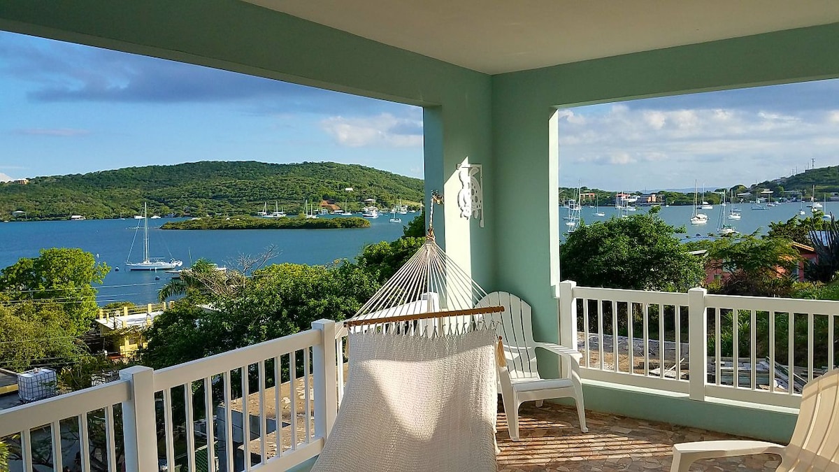 🌅Relaxation Awaits!🌅 Perched hillside with stunning panoramic views of Ensenada Honda, Dakiti Reef and the sparkling Caribbean, the Sea Turtle Studio is a serene retreat designed for relaxation & privacy. From your spacious covered terrace, sip your morning coffee as you watch boats glide in & out of town. Look across the water to the iconic Dinghy Dock, there’s always something to see-including sea turtles surfacing for air. On a clear night enjoy twinkling lights of Vieques in the distance.