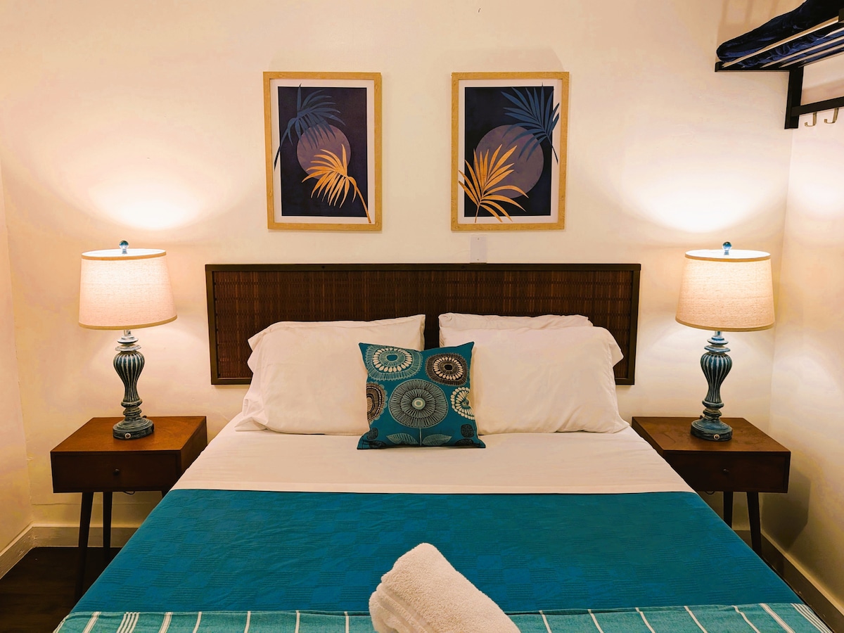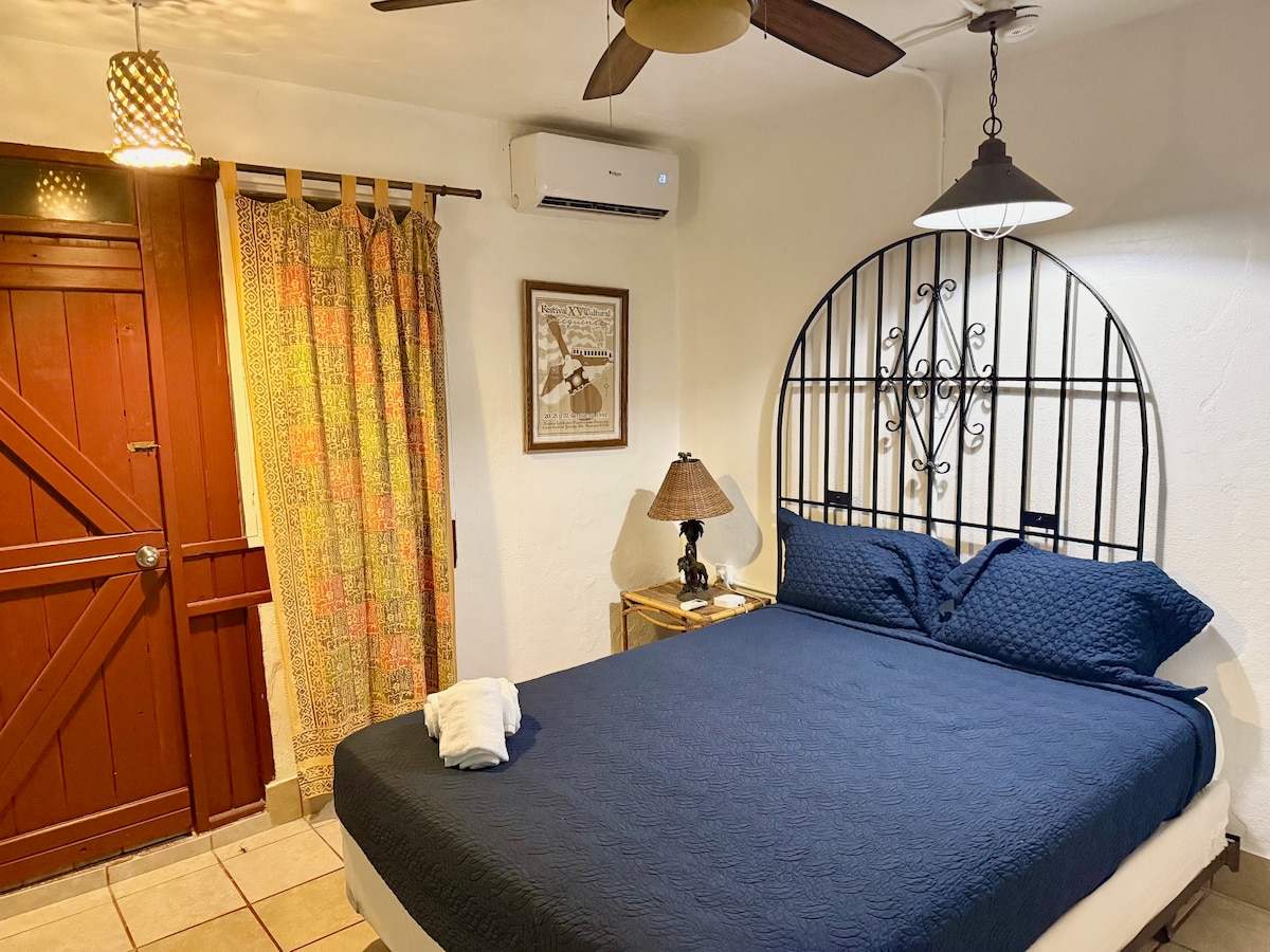 Our recently renovated Penthouse is setup with 2 queen size beds, has a full kitchen combined with living/dining, & a bathroom. The side doors open to a spacious patio. Its only a 7-10 minute walk to the Malecon (the main tourist strip) in Esperanza and is close to the Green Store so you can pick up supplies. We have the fastest wifi that we could get on the island, so guests can stay connected. Tropical gardens on first floor with a mango tree. Brand-new, upgraded Air Conditioner in this unit!