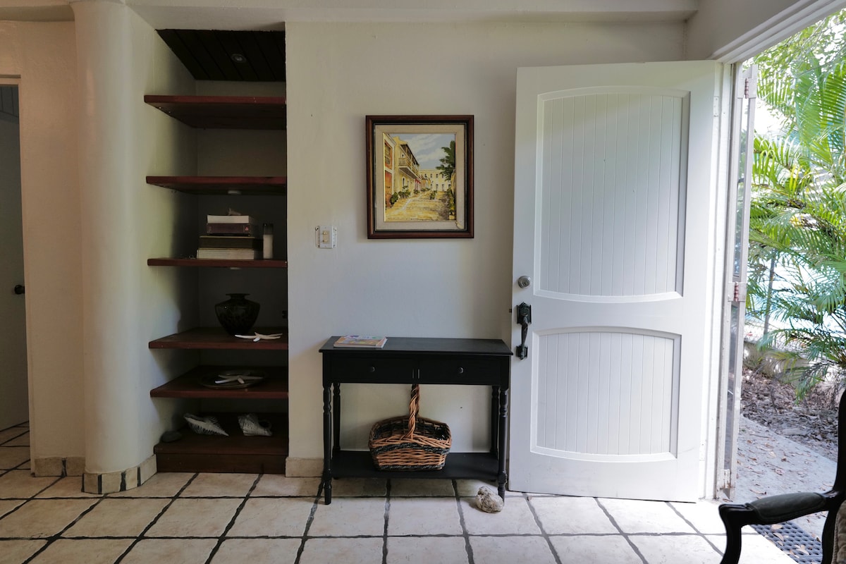 Cozy, centrally located guesthouse tucked behind our main home in the heart of Culebra. Walk to restaurants, bars, cafés, and shops. A simple, comfortable space with vintage touches. The house has been in my family for generations, originally my great-grandmother’s home, and is full of character. In-town sounds are part of the experience: live calypso and music can be heard some nights and roosters in the mornings. Ideal for travelers seeking a walkable, authentic home base while exploring.