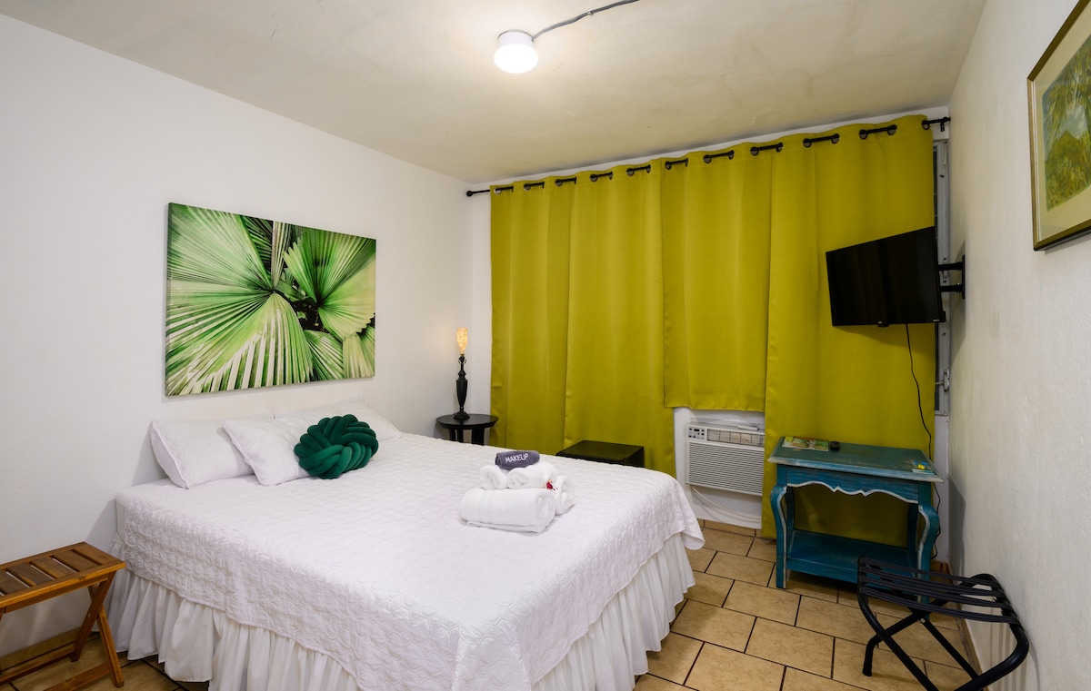 A peaceful 1-bedroom studio surrounded by the beautiful island scenery of Vieques, Puerto Rico. With just a 15-minute drive to the beautiful white sandy beaches where you can swim and enjoy snorkeling with the family. Located centrally Villa Borinquen, 10-minute drive to Malecon, where you can enjoy the local restaurants while enjoying the view of the Caribbean Ocean.
