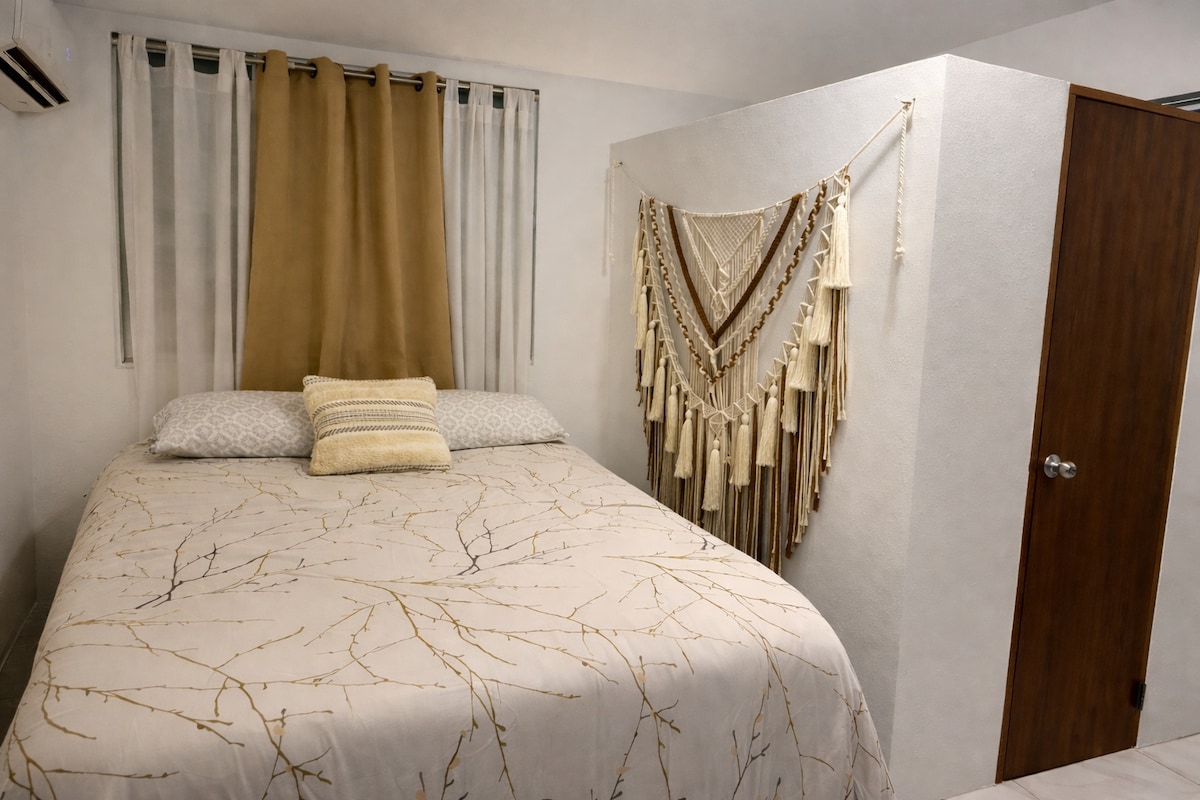 Casita sin lujos, pero limpia y segura a media cuadra de todas las tiendas y restaurantes de Esperanza. 1 dormitorio grande con una cama queen y 2 literas individuales y aire acondicionado. Aquí están los pros: -A poca distancia de todo lo que necesita, supermercados, recorridos por la bahía bioluminiscente, playa Sun Bay, tiendas y restaurantes del Malecón. -barrio seguro -casa privada y patio con hamaca