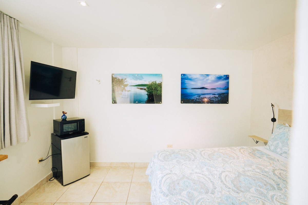 Enjoy an amazing view of the blue Caribbean sea and visit the beautiful beaches of Culebra while staying in our luxurious studio unit, great for couples, small families and solo travelers! This newly renovated apartment is centrally located between the famous Culebra beaches--only 2.5 miles from the famous Flamenco Beach, a 15 minute walk from the airport, and just over a mile from downtown Dewey, and the Ferry dock. Beach towels and beach chairs are included!
