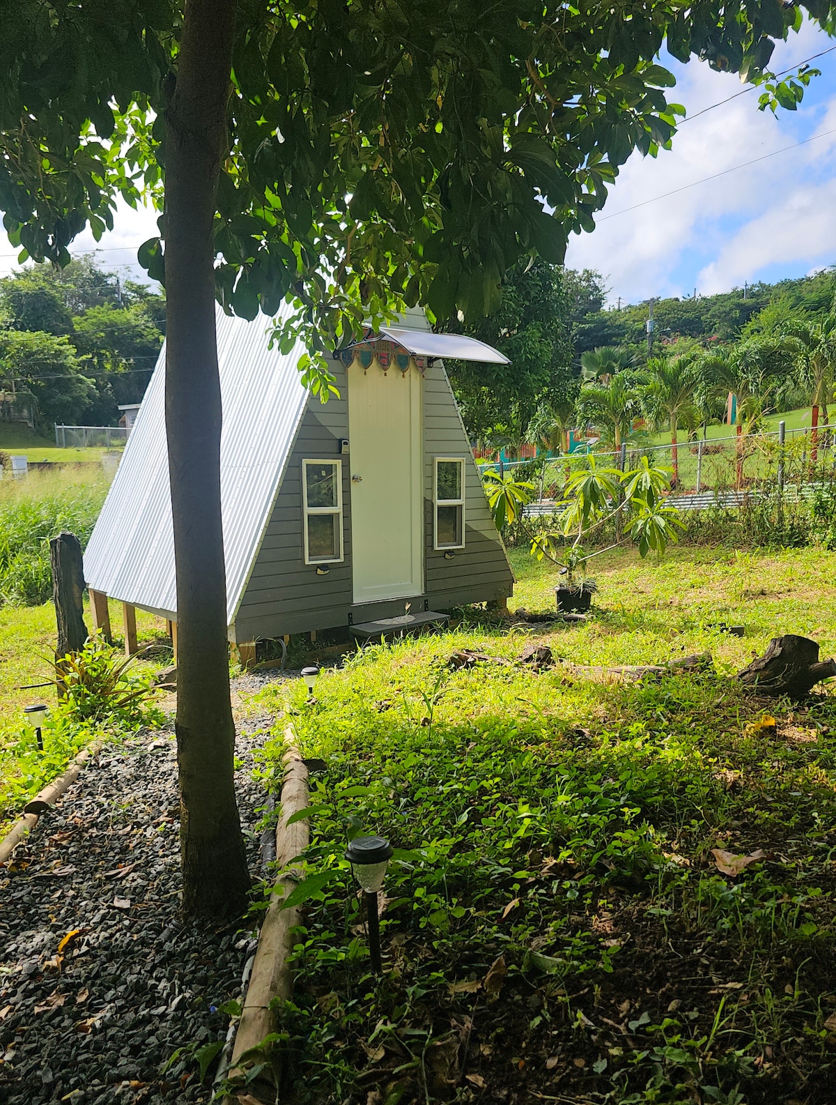 Reconnect with nature at this funky unforgettable escape. This is a stand alone 10x12 A frame structure next to small main house. The restroom and shower are outdoor but private. There is hot water in shower. Large outdoor shower room with rain shower heads. Ac in room is super cold. Queen bed with foam mattress Owner lives full time on property. This is my new second unit on the property that is completely secluded from other unit have same location. Check out my reviews on Casa Mandala #1.
