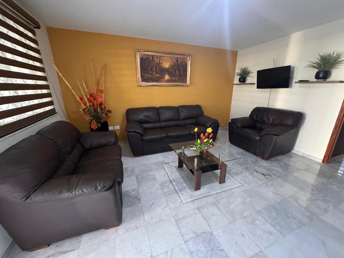 Amplia casa en privada con acceso controlado. Ideal para viajes familiares, de trabajo o turismo. Cuenta con 4 recámaras, 3 baños, aire acondicionado, cocina equipada, lavadora, Smart TV con Netflix y WiFi de alta velocidad. Cochera para 2 autos. ¿Vienes por consultas, terapias o a cuidar a un ser querido? Estamos ubicados junto al Nuevo Hospital General, ideal para pacientes, familiares, doctores y estudiantes. ✅ Recámara en planta baja ✅ WiFi rápido y espacio tranquilo ✅ Comodidad y cercanía
