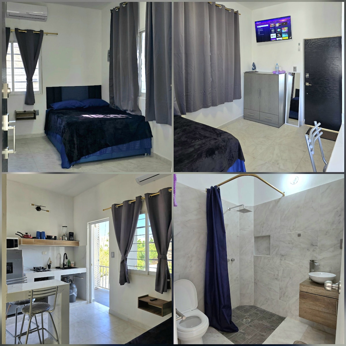 Relájate en este espacio tan tranquilo y acogedor, disfruta la estancia con una comoda cama y una buena pelicula, tambien puedes disponer de la cocina y elaborar un rico desayuno, si tu visita se trata de trabajo, puedes hacerlo comodamente.