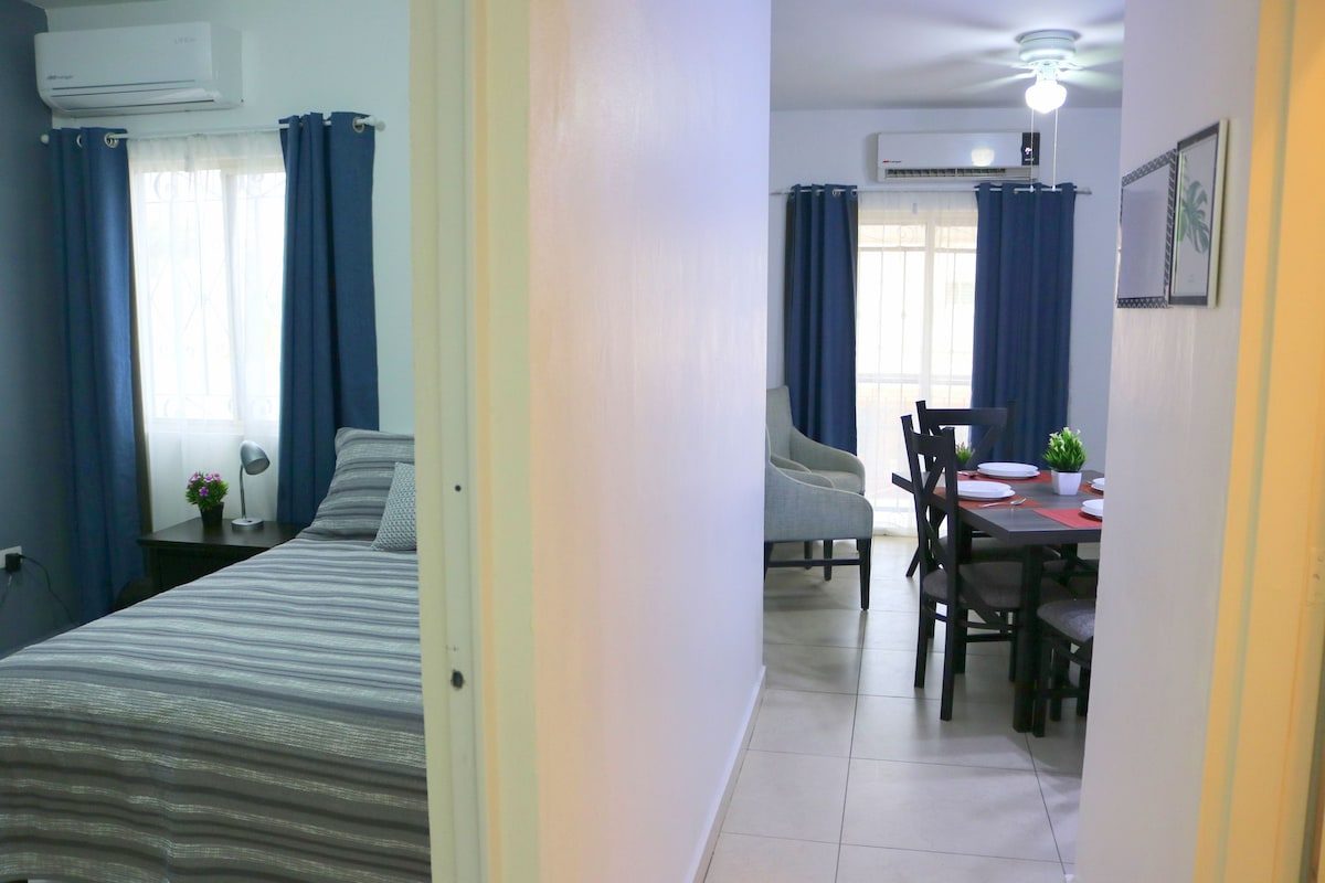 Spacious and comfortable apartment, perfect for short or long stays. Just 3 blocks from Soriana La Campiña, 2 min from the malecón and 10 min from downtown. Located in a safe, private family complex. Fully air-conditioned, high-speed WiFi, Smart TV with Netflix, and one private parking spot. Ideal for relaxing or working peacefully!