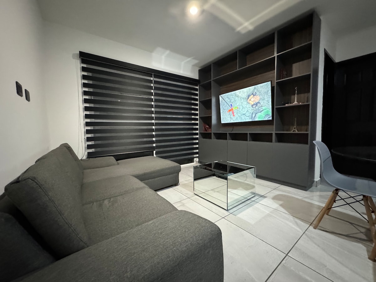 Disfruta de este elegante departamento en el centro de Culiacán. Cuenta con cocina equipada, recámara con colchón memory foam y baño completo. La sala incluye un sofá cama, comedor totalmente funcional y entretenimiento con Wi-Fi, pantalla, home theater y Alexa. Tiene aire acondicionado, ventanas con vista panorámica a los hermosos atardeceres, estacionamiento privado y servicio de lavandería. Perfecto para una estancia cómoda y práctica en una ubicación inmejorable.