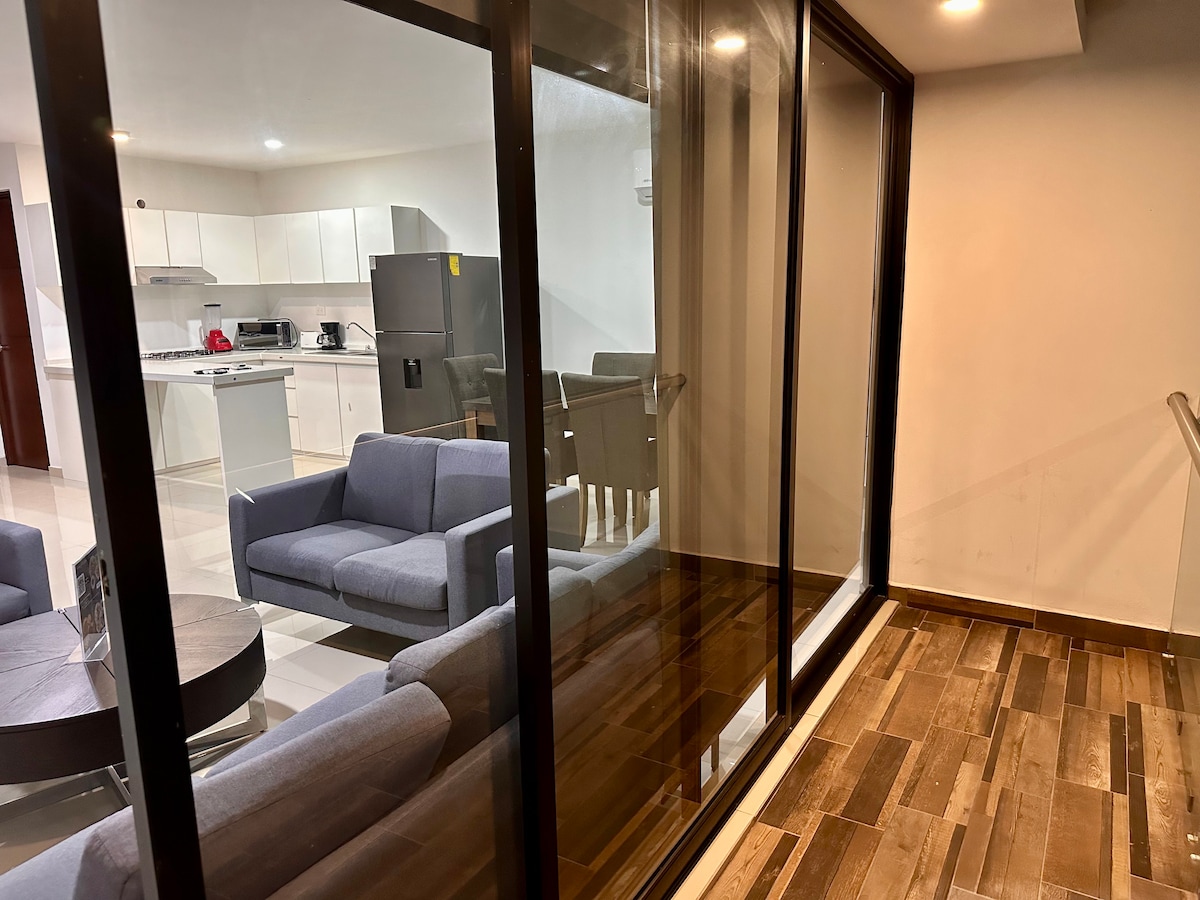 Amplio departamento fresco y bien ventilado aun en tiempo de calor, completamente amueblado para una estancia confortable y segura, aún en estancias largas, ideal para grupos de trabajo, facturamos tu estancia Es una privada donde vivimos solo familias y la zona es muysegura y tranquila, se ubica a 3 cuadras del paseo del angel (zona de restaurantes y bares), a donde pueden llegar caminando. Esta cerca de cualquier centro de negocios, estadios, teatros, la catedral, comercios, hospitale