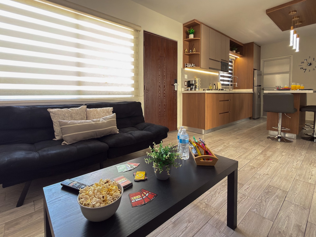 Enjoy this elegant apartment in the center of Culiacán. It has an equipped kitchen, bedroom with memory foam mattress and full bathroom. The living room includes a sofa bed, fully functional dining area and entertainment with Wi-Fi, screen, sound bar and Alexa. It has air conditioning, windows with panoramic views of the beautiful sunsets, private parking and laundry service. Perfect for a comfortable and practical stay in an unbeatable location.