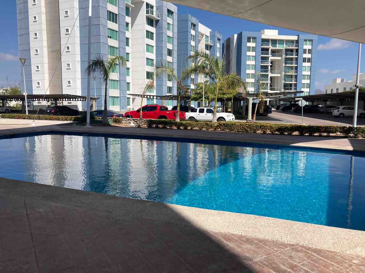 Cómodo y Calido Departamento con Alberca 2 Hbs