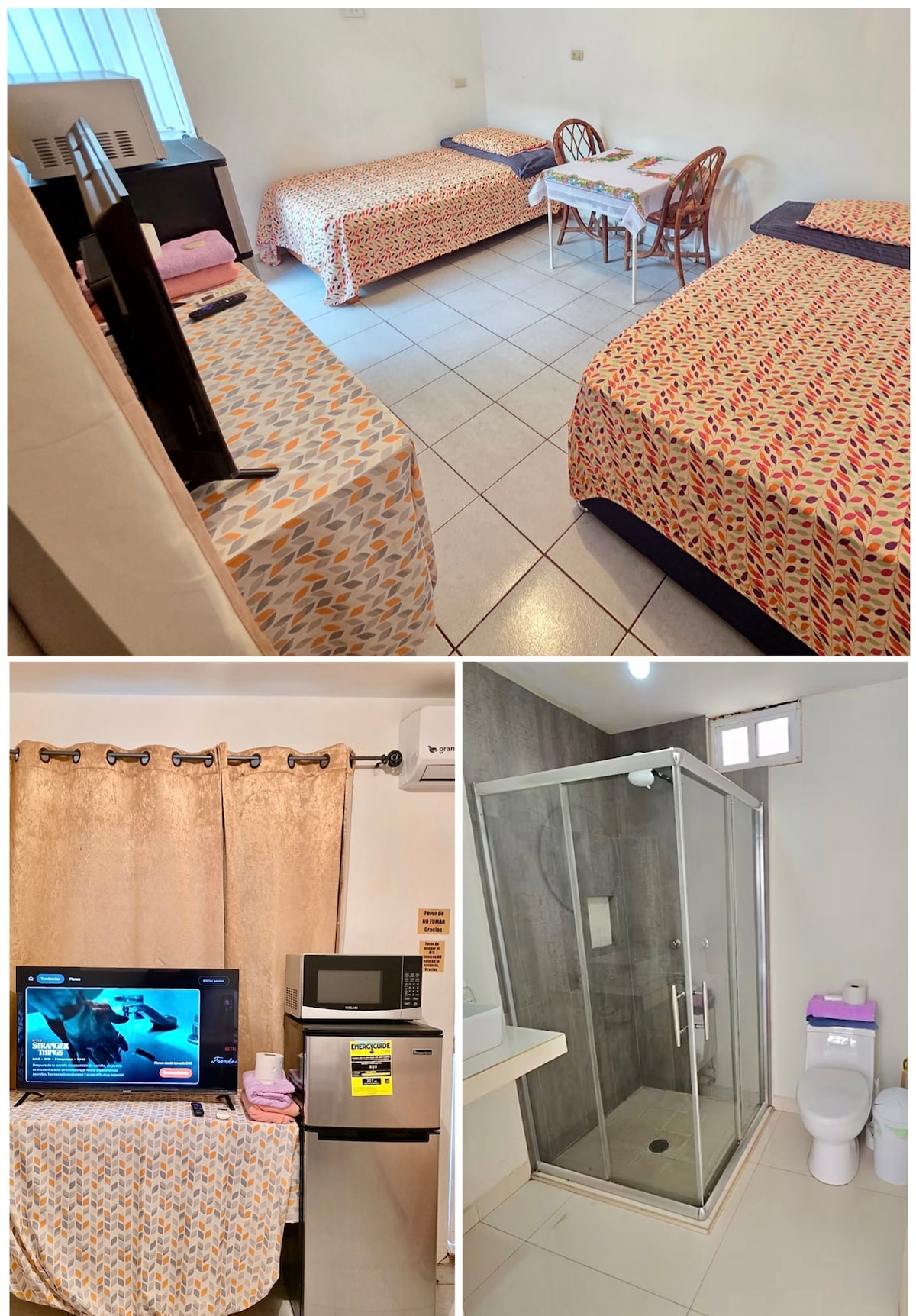 Es un espacio acogedor para 2 personas en el cual tienen para su uso la habitacion cama Queen, cocina con sus utensilios, amplio refrigerador y microondas .Cuenta con los servicios de T. V, WIFI, NETFLIX, MINISPLIT el agua Caliente solo es en temporada de frío! Se encuentra ubicado a una cuadra de la facultad de medicina, 5 minutos de la Plaza 4 ríos,7 de Forum, 5 del andador del malecón para disfrutar caminando, o bien en bicicleta o patinar la idea es disfrutar todas sus áreas del malecón!