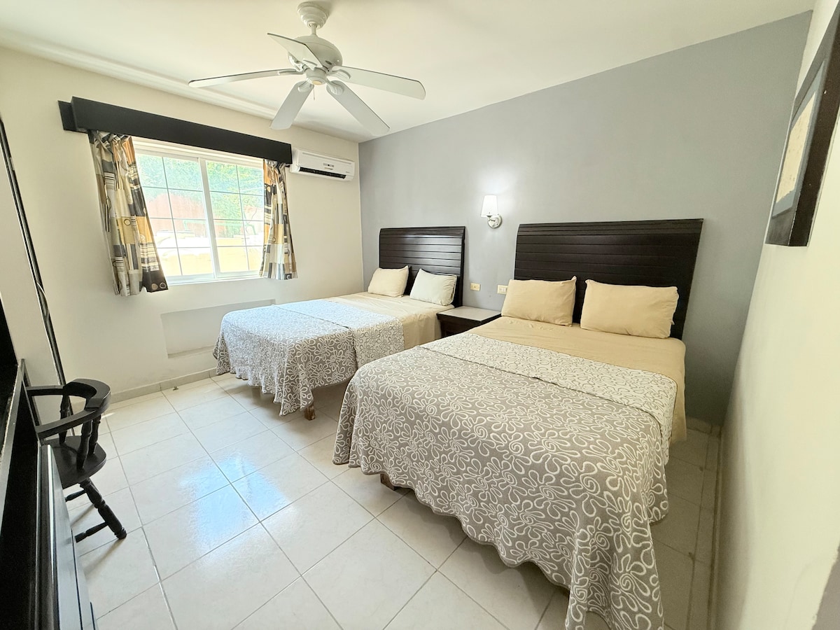 Habitación que cuenta con dos camas matrimonio,escritorio de trabajo, baño completo privado, barra desayunador con 2 bancos, que incluye: mini-fridge, microhondas, y cafetera.Gracias a nuestra ubicación, puedes llegar rapidamente a varias localidades importantes de la ciudad, así como oficinas de diversas empresas.