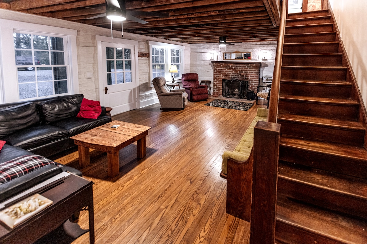 Beautifully restored spacious and peaceful log cabin with curated finishes, furniture, and fixtures throughout. Kitchen layout, along with adjoining sunroom and deck are perfect for family gatherings. Incredible location. Less than 4 miles from Hampden-Sydney, Longwood University, Downtown Farmville, Appomattox River, High Bridge Trail, and Dining Shopping. 4 bedrooms -2 queen beds and 4 twin- 3 full bathrooms. Central air, fireplace, WiFi, 3 TVs, and washer and dryer. Managed locally