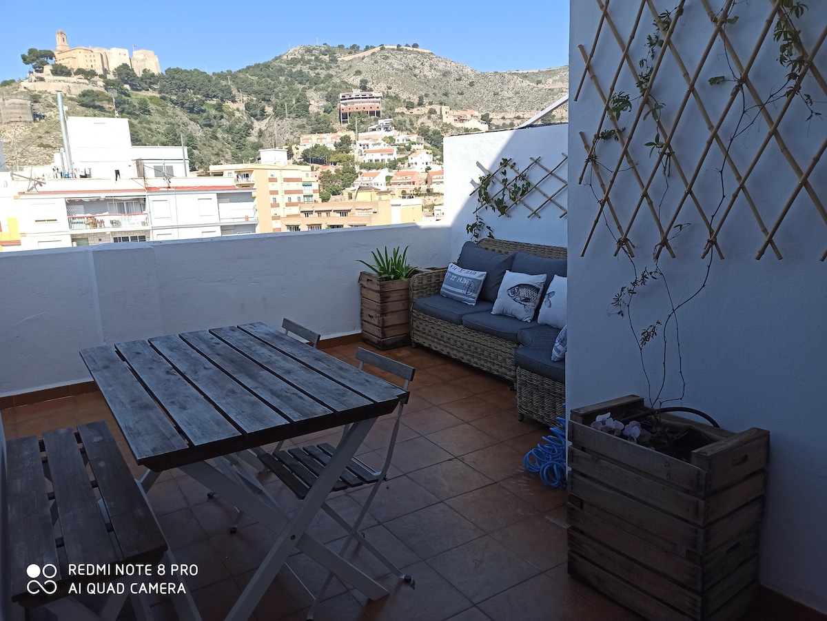 Bonito ático en San Antonio, dos orientaciones terraza con vistas al castillo de Cullera y balcón con vistas al mar. Amplia terraza , playa a 50 metros y todos los servicios a mano, tiendas, supermercados, etc.