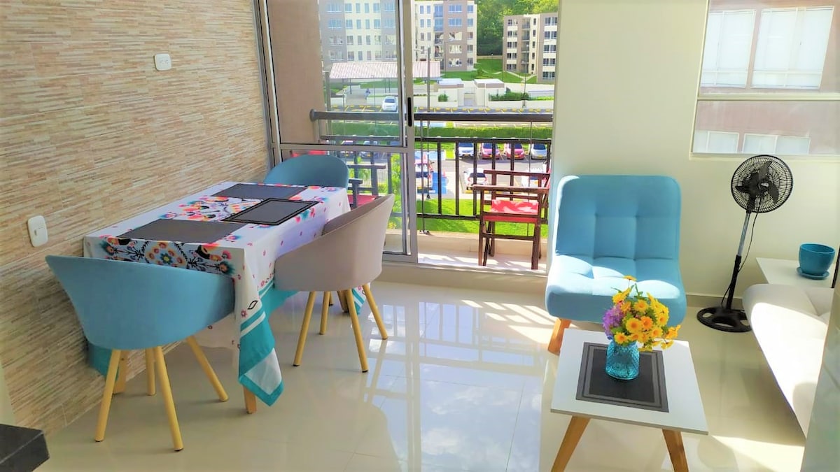 Relájate y desconectate en este cómodo y elegante alojamiento en un conjunto rodeado de naturaleza listo para turismo o visitas de negocios. Encontrarás 3 habitaciones con closet, balcón, cocina,sala comedor, 2 baños con lindos acabados, lavadora, cocina dotada, nevera, horno microondas, plancha de ropa, internet,televisión x cable. Cerca al parque Las Malocas , Hotel campanario y un restaurante típico de la región. Acceso a piscina para adultos y niños. Parqueadero 24 h contiguo al conjunto