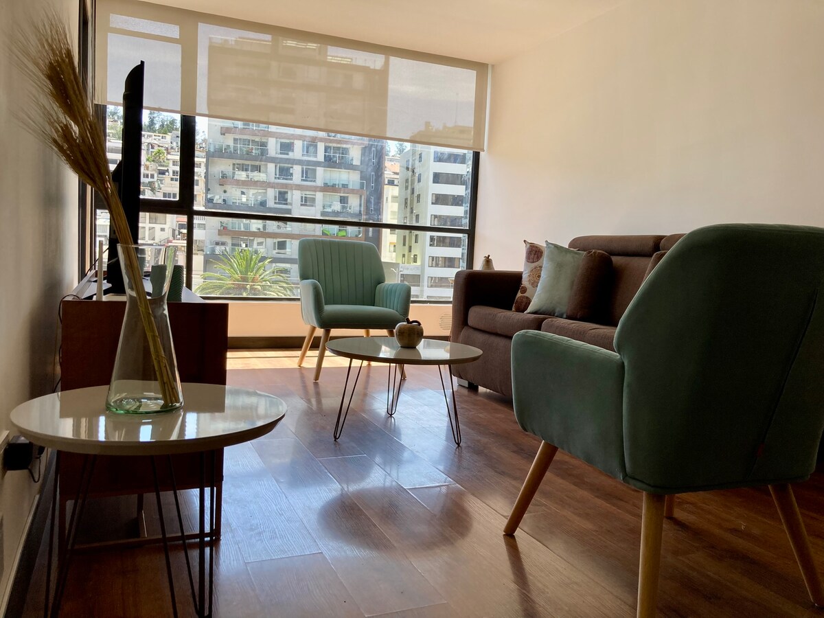 We are located 3 blocks from La Carolina Park and the same distance from Metropolitan Park. From the airport, the drive is 40 minutes. Downtown Quito is 5 km away (17 minutes), and the Middle of the World City is 26 km away (40 minutes). Free parking, 24-hour reception, and free Wi-Fi. In the apartment you will find: 2 bedrooms 2 bathrooms living room equipped kitchen, dining room, washer and dryer 2 flat-screen Smart TVs 24/7 security