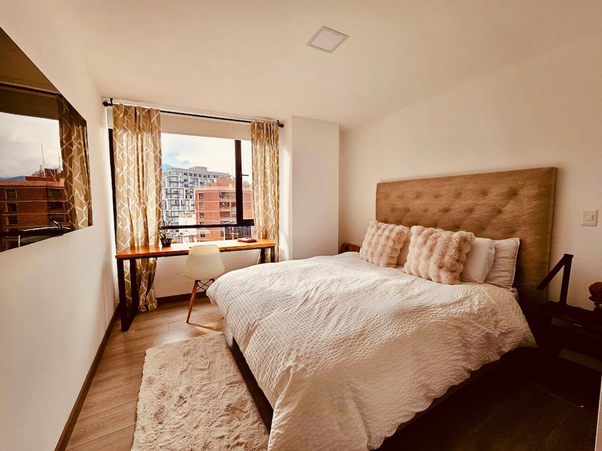 Spectacular suite located just across La Carolina Park. Imagine the view from the 17th floor, whether you're relaxing on the sofa or in bed. Features a fully equipped kitchen, fast internet, and you'll feel right at home. Easy walking access to the Subway, Mall El Jardín, and CCI. Pool - Sauna - Jacuzzi Well-equipped gym Incredible rooftop 60” Smart TV - Netflix Induction cooktop Refrigerator Laundry room inside the apartment Microwave Blackout curtains Clothes iron