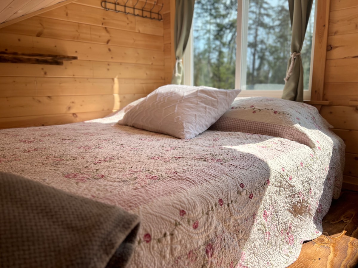 A cozy forest cabin tucked among tall trees, offering a peaceful and intimate escape in nature. The open-concept space is filled with natural light, forest views from every window and warm wood details throughout. A short forest walk leads through old-growth trees to the Englishman River & Waterfalls — a beautiful place to wander, explore, and take in the natural surroundings. Out of a Dream is a simple, comfortable retreat for guests looking to slow down and enjoy a quiet stay in the woods.