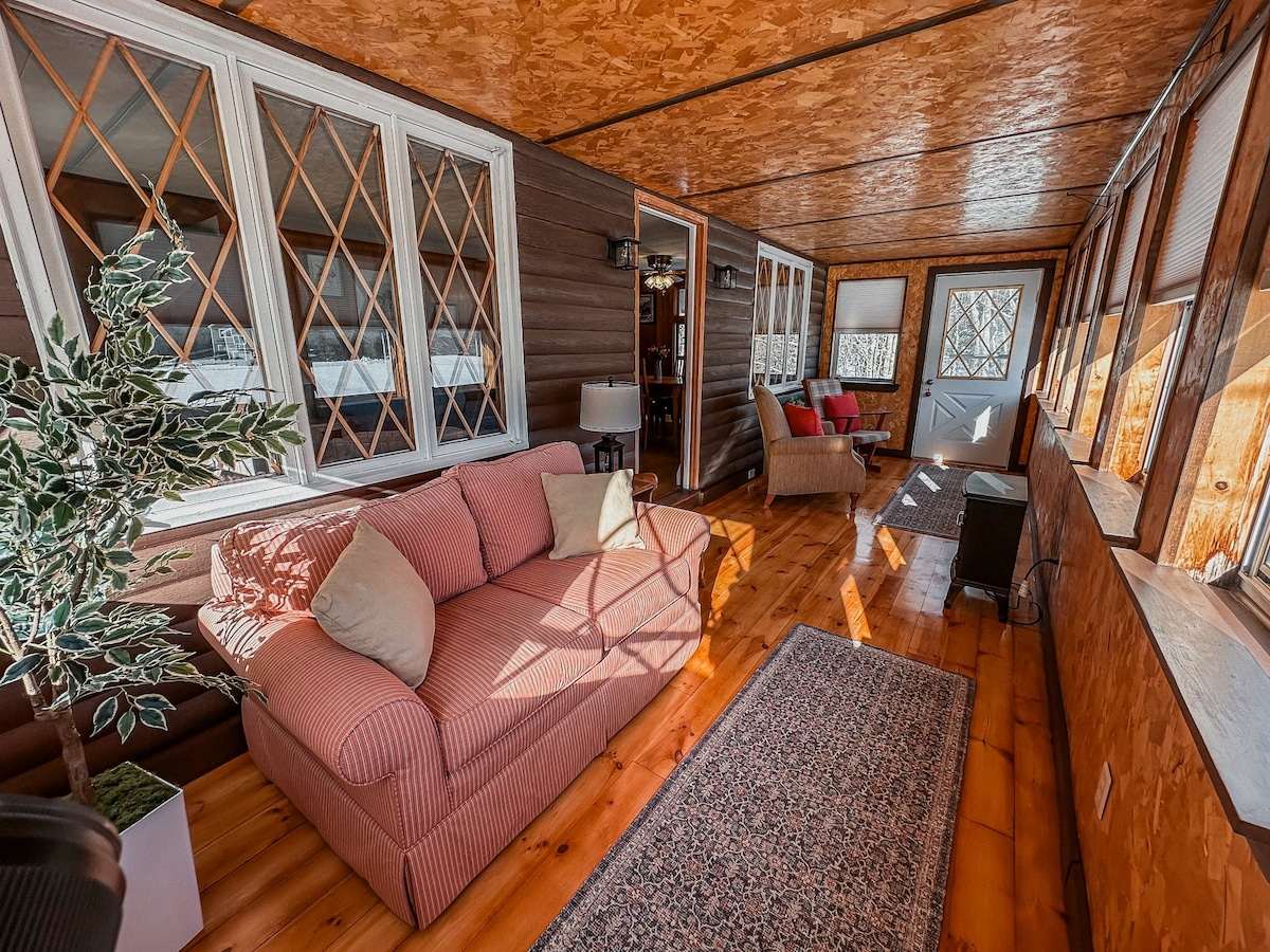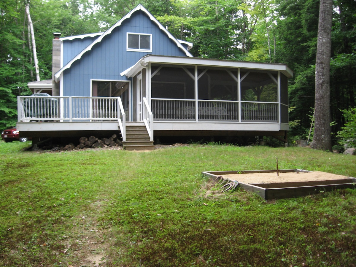 Peaceful chalet nestled beside our maple woods in Southern Maine. Upstairs queen suite TV, tea/coffee nook with books and games; first-floor cozy bedroom with full bed. One full bathroom. Open concept living room, dining area, all-season porch with electric fireplace, fully stocked kitchen, and washer/dryer for guest use. Hospitals, shopping and beaches about 30 minutes away. Visit our maple sugar shack just down the road!