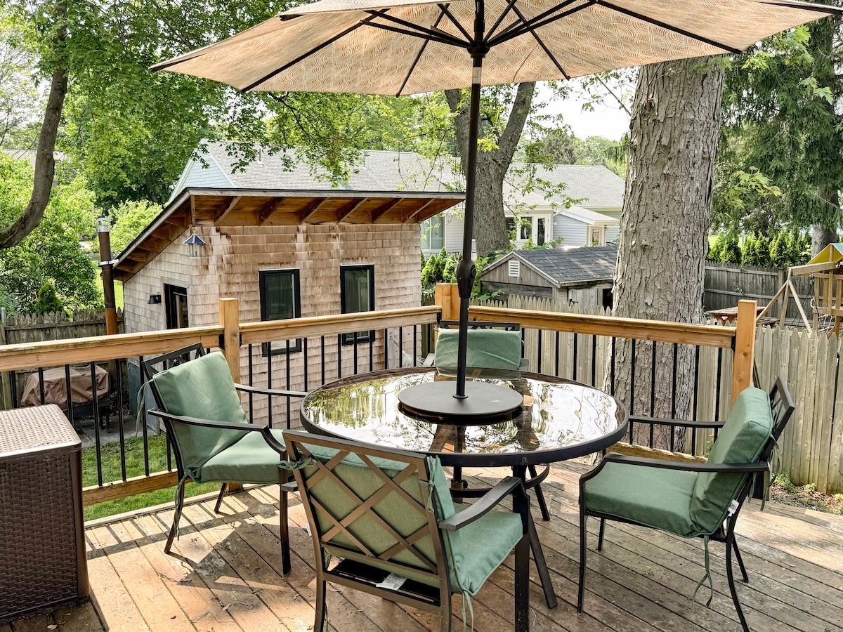 Contemporary, newly-renovated cottage between Portland and Freeport. Spotless interior w/ full kitchen, Netflix/AppleTV+, premium Tuft+Needle bed, and washer/dryer. EV charging available. Walk down Main Street to shops, restaurants, and the scenic Royal River. Easy drives to downhill skiing and iconic beaches, Portland's renowned restaurants, LL Bean flagship, and top-rated Maine Brewing. Half way between Boston and Sugarloaf. Your ideal base for Maine adventures.