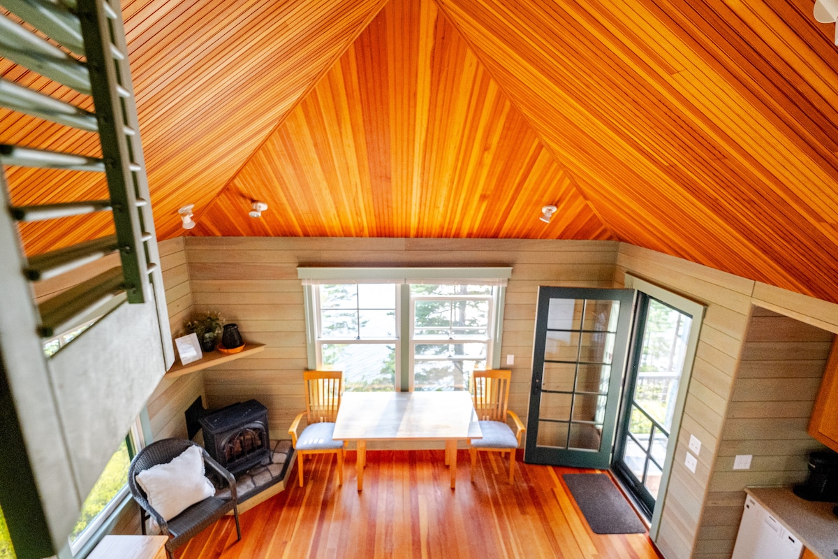 Fern Hollow is one of 5 luxurious tiny homes that make up Littlefield Retreat, a tranquil woodland village of 3 treehouses and 2 hobbit houses – each with its own private hot tub and dock. To see all five dwellings, click on the photo to the left of “Hosted by Bryce”, then click “Show more…”. This 15-acre forest retreat on Littlefield Pond offers our guests an experience that feels like a trip up to the woods of northern Maine, but is closer to home and to all the attractions of southern Maine.
