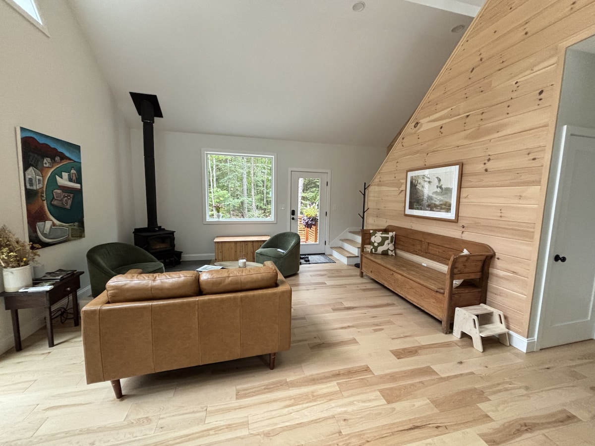 Escape to a dreamy timber-frame cottage tucked in Maine’s woods! Soaring beams, radiant-heated floors, a king loft bed, and a crackling fire pit await. Sip coffee on one of the two decks, hike Bradbury Mountain (3 minutes away), shop Freeport (10 minutes away), or dine in Portland (20 minutes away)—then return to your cozy hideaway under the stars. Full kitchen, vaulted ceilings, radiant heat floors, private driveway, fire pit and peaceful forest views make it the perfect year-round retreat.