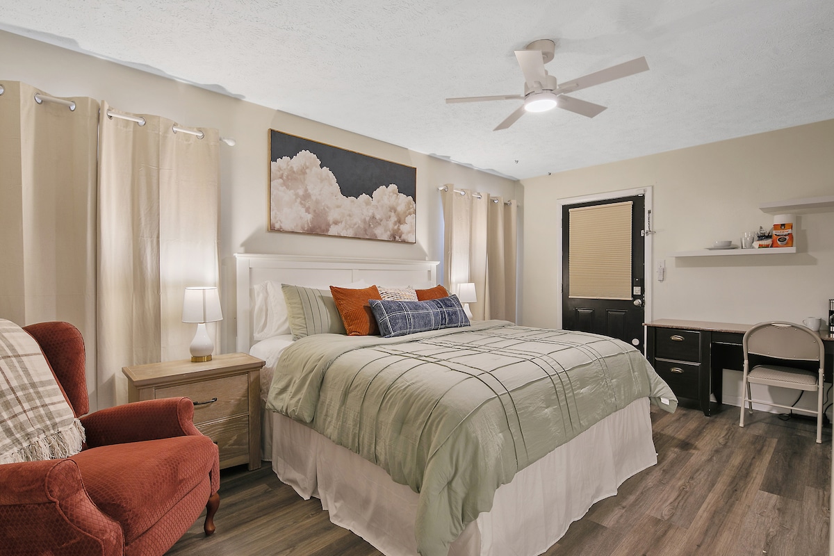 Welcome to our studio, a cozy retreat near the best of Fayetteville. It features a private entrance, patio, and self-check-in. Secure street parking included. Enjoy privacy with a pathway to your door, even though the studio is attached to the main house. Inside: full bathroom, king bed, and a small kitchen with essentials like a microwave and coffee maker. Ideal for travel nurses and contractors seeking comfort and convenience.