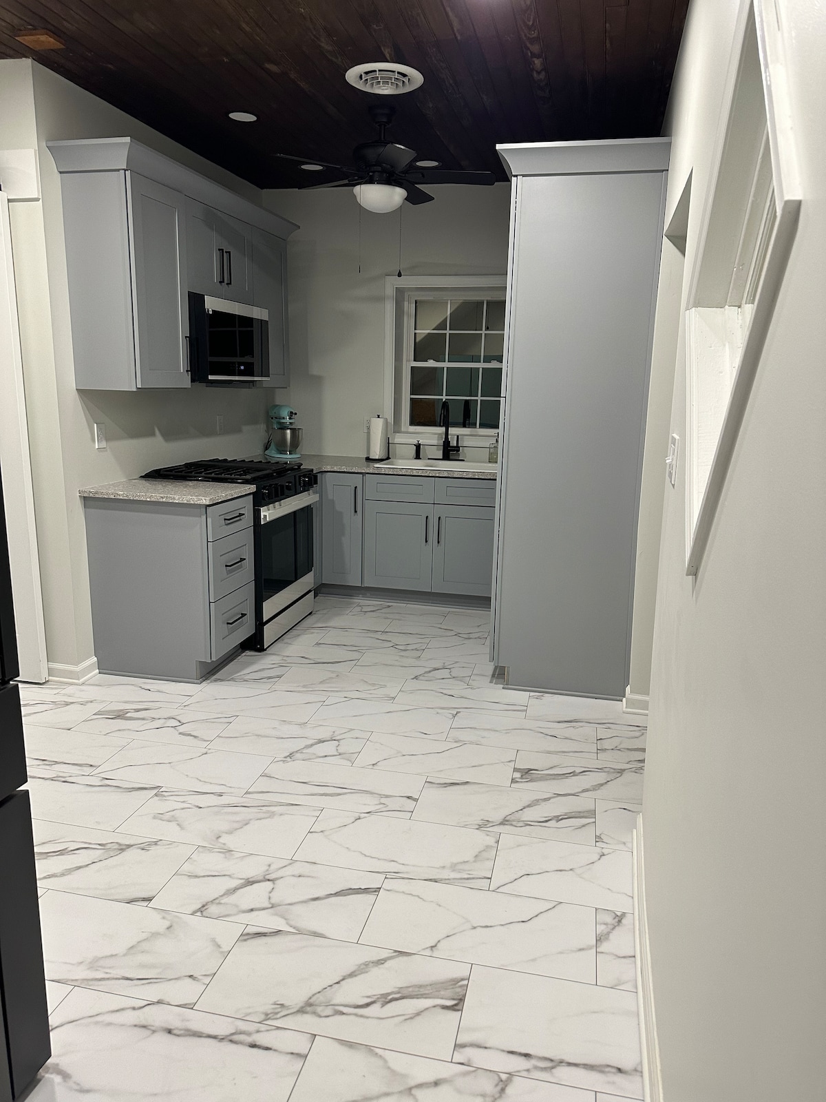 The Penn Suite features 2 spacious bedrooms, each with a queen, and its own private kitchen with all appliances for your use. There's even a washer and dryer! The kitchen is adjacent to your private living room where you can relax after exploring downtown Carlisle. The suite also includes a private bathroom with tub, shower with rainfall shower head, and a bright and airy skylight. You'll enjoy our complimentary spa like products, complete with hand soap, shampoo, conditioner, and body scrub.