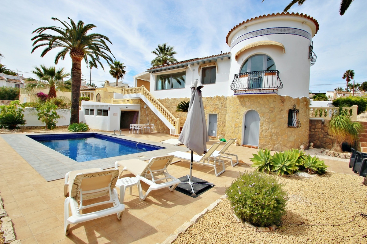"Villa Sunset Moraira" - Enjoy dreamy days in a modernized Spanish-style villa for up to 8 guests. Highlights: - private pool (with heating) - large outdoor area with south-facing views - Outdoor kitchen with barbecue - air conditioning, fans and heating in all rooms - high-quality furnishings - 3 bedrooms with box-spring beds - 2 modern bathrooms with shower and bathtub - fully equipped kitchen - fast Wi-Fi - Smart TV - quiet location, close to the beach ☆ "Clio's villa is an absolute Jewel!"