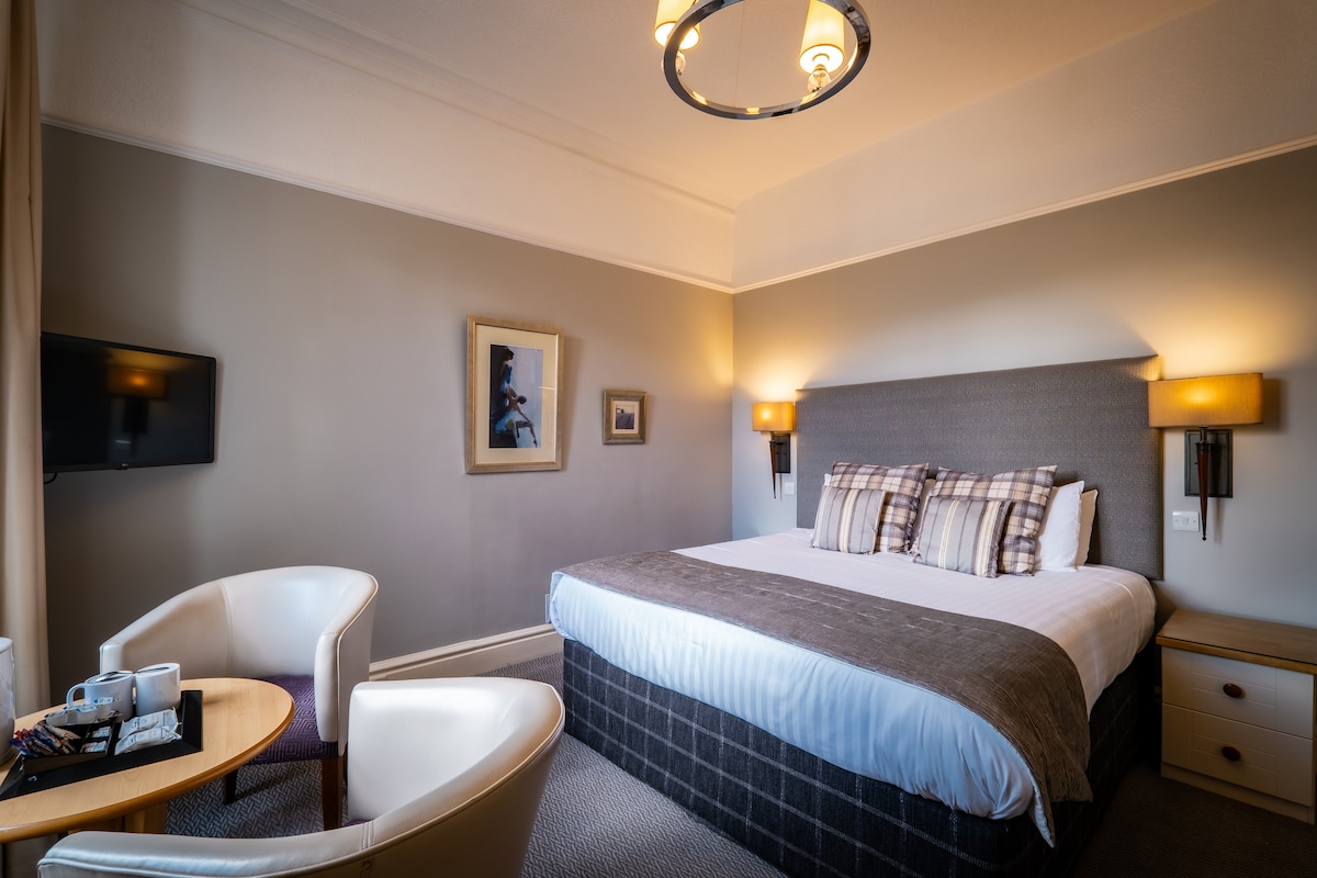 Boutique and bold, our King Room at Cambridge House offers a cosy, design-forward retreat in the heart of Windermere. Rich, moody interiors create an inviting atmosphere, with luxury linens, curated furnishings, and a private en-suite with shower. Enjoy high-speed Wi-Fi, a coffee machine, and kettle — perfect for stylish stays in the Lakes. Just steps from the train station, with effortless access to the lake and surrounding fells. Non pet friendly.