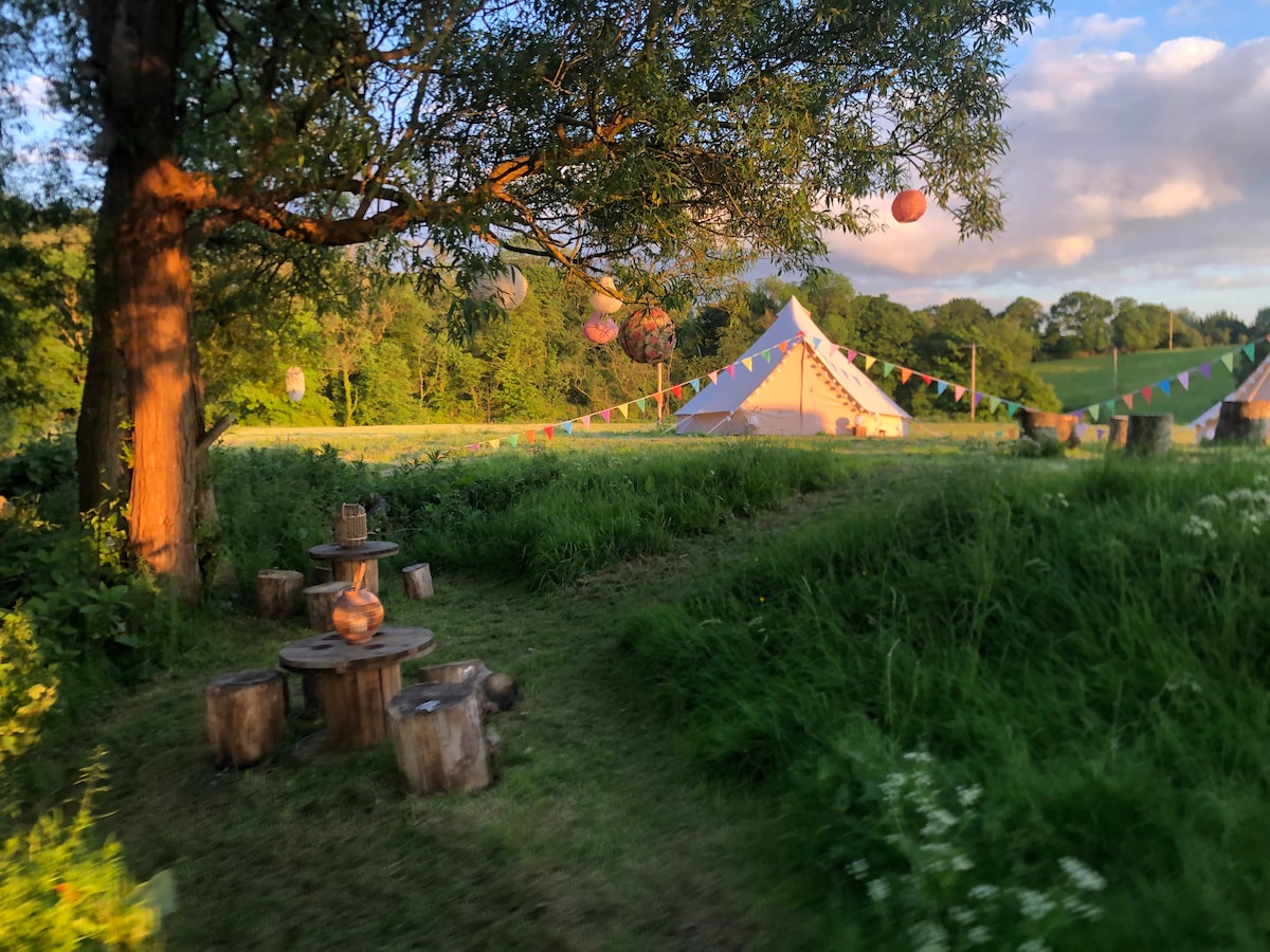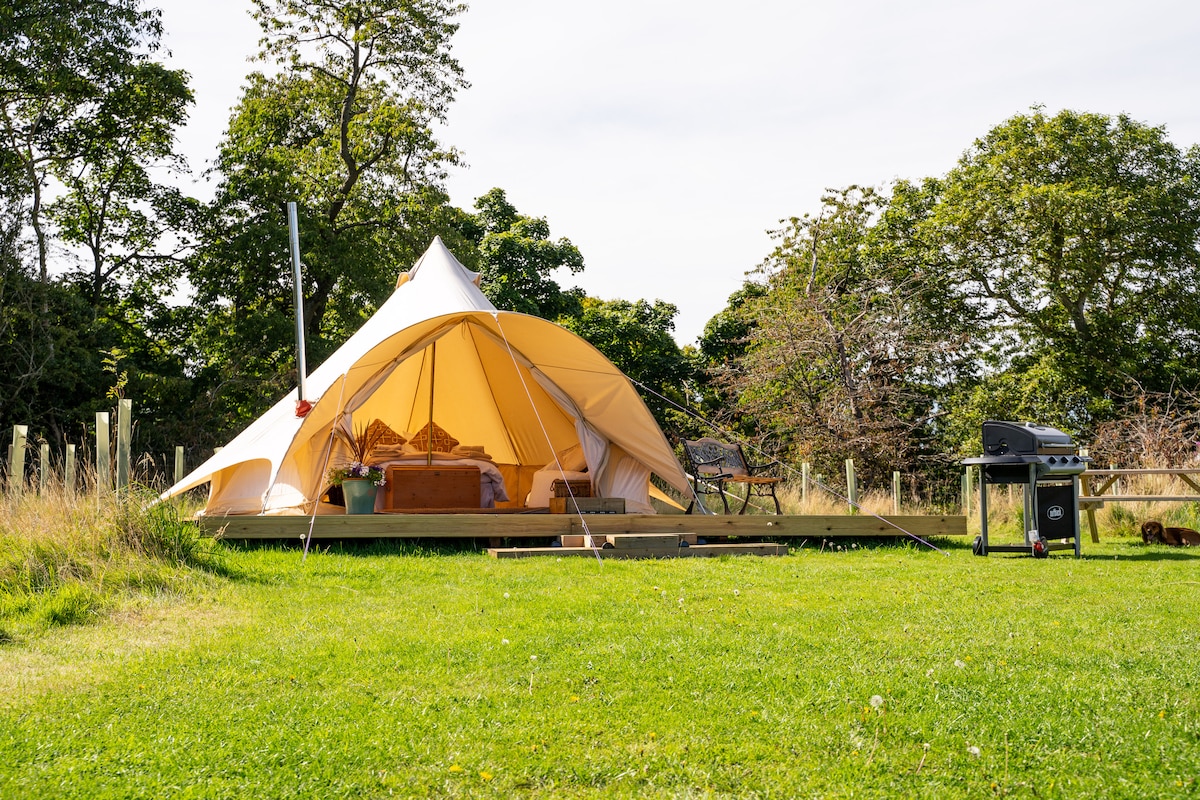 Our luxury off grid retreat comprises of a 5meter bell tent and offers guests the perfect combination of outdoor living style with all the comfort of a five-star hotel. With king size bed (with hotel standard mattress) and lots of special touches. It's the ideal romantic getaway for couples looking to escape the everyday and spend some time in nature. Based on an organic working farm in Dumfries and Galloway. PLEASE READ THE FULL DESCRIPTION BEFORE BOOKING