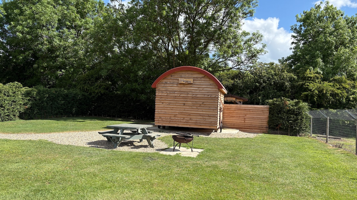 A beautiful, original 1950s Bowtop caravan next to a stream with wood-fired hot tub* and chimnea for your exclusive use. Lovingly restored by your host Annabel to combine the traditional feel of Romany life with modern day living. Langtonbury provides all you could want for your glamping holiday; Full size double bed, Table and seating to relax at. A small sink with fresh water, 2 ring hob Kettle + toaster Electric lights Adjacent bathroom *(Hot tub use incurs a small extra charge)