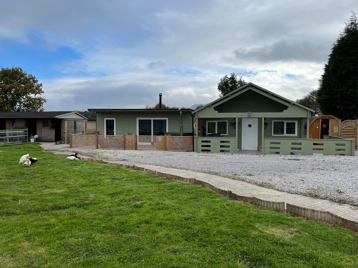 Cosy countryside lodge with wood-fired hot tub & bubbles. Sleeps 4,Optional private sauna hire available for a relaxing rural escape. There is Gas central heating which is on for three hours in the evening and 2 hours in the morning during the months of September 31st to March 31st. If heating is required afforestation that period there is an off grid charge of £20.00 A warm, peaceful lodge retreat perfect for romantic breaks, celebrations, walking holidays and seasonal getaways.