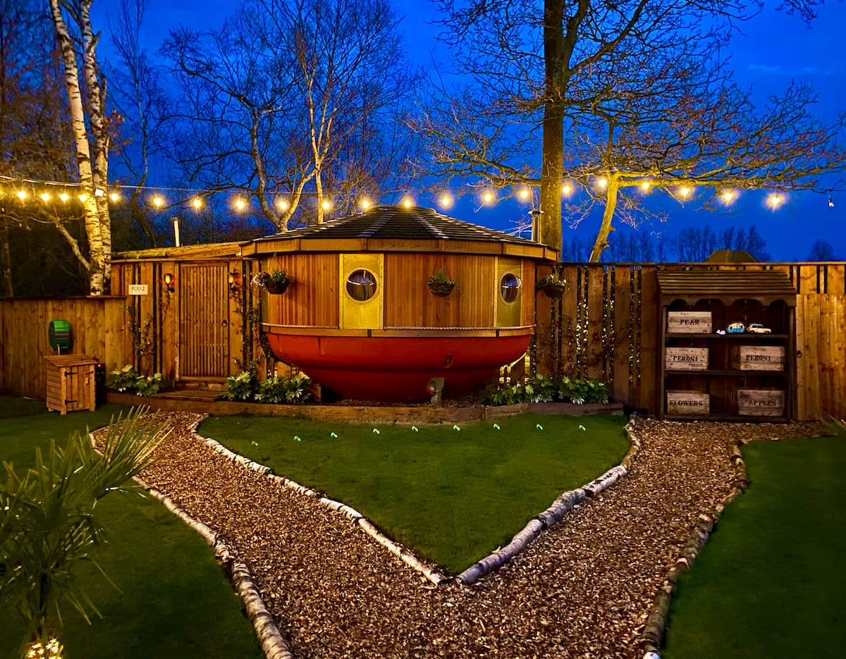 “Faun Lodge” Hebden Bridge You’re in luck! The resident faun has gone on his travels and has given permission for you to stay in his oh-so-special woodland hide-away! Escape the challenges of the world and be enchanted with the simple yet magical eco-built “Faun Lodge”, with its turf roof, mosaic floor and wood burner. Hidden right in the heart of the semi-rural town of Hebden Bridge in a waterfront natural setting which will encourage you to dream your wildest dreams by day and by night.