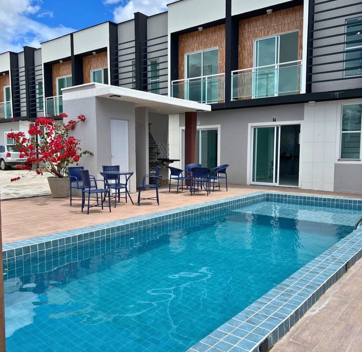 A Casa Flor Cumbuco é situada na avenida central a 50m da praia do Cumbuco perto da vila com restaurantes, bares e lojas. 5 suítes todas com ar condicionado e novas camas box queen. quartos espaçosos com armários e banheiros com agua morna Uma ampla sala e cozinha toda equipada com as necessidades para uma excelente estadia. campo de futebol /vôlei, sauna, mesa de sinuca e uma piscina grande amplo espaço relax com bar e churrasqueira e sinuca. churrasqueiro e bar man