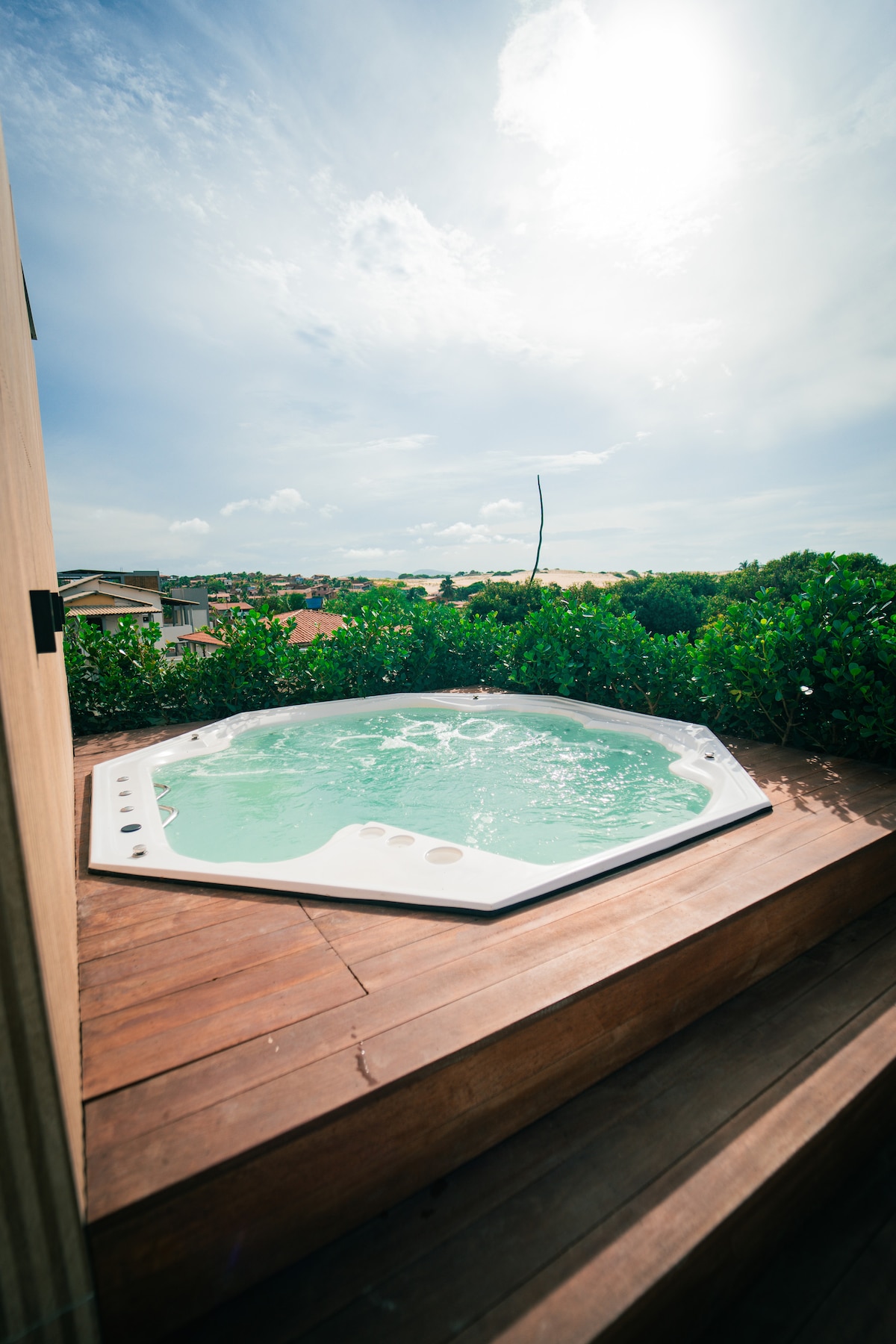 A wonderful house with 6 suites in front of the sea with direct access to the beach, with a large garden and beautiful pool, direct access to the sauna and heated Jacuzzi. The barbeque deck with bar is integrated into the house and pool. As for sports activities, Cumbuco is one of the best places in the world to practice kite surfing. There is also the infrastructure to play beach tennis, table tennis, snooker and tennis court (lisonda) and football with lighting.