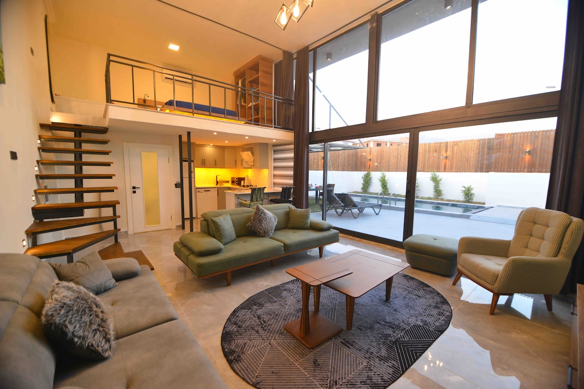Villa Robus Sun, located in Fethiye's scenic Kirme region, offers a tranquil, luxurious vacation experience. Nestled in nature, it features modern and stylish decor, spacious living areas, and a private pool for an unforgettable stay. Ideal for nature walks with its proximity to the Lycian Way. Experience authentic village life and local cuisine. Close to Ölüdeniz and Faralya for easy access to tourist attractions. Enjoy a comfortable, nature-immersed holiday at Villa Robus Sun.