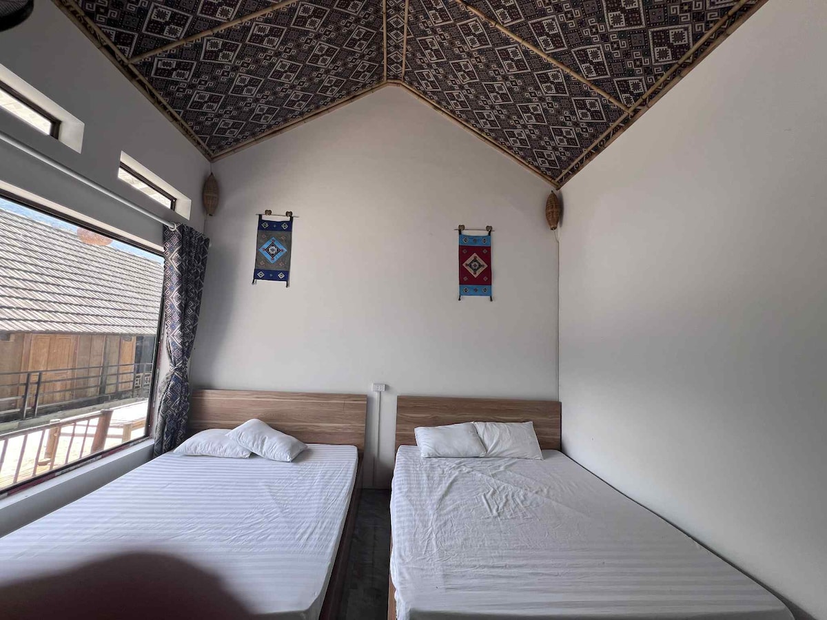 Trải nghiệm khung cảnh ngoạn mục của núi rừng Pu Luông mang đến trải nghiệm văn hóa và tự nhiên độc đáo. Căn bungalow 2 tầng 30m² cho 4 khách. Nằm tại trung tâm của Pu Luông Thư giãn với bữa sáng, 2 giường cỡ queen Phòng tắm có vòi sen đứng, nhà vệ sinh hiện đại, nước nóng/lạnh, máy sấy tóc, khăn tắm, bàn chải tóc và đồ vệ sinh cá nhân thân thiện với môi trường, mang đến sự thoải mái thanh bình giữa thiên nhiên.