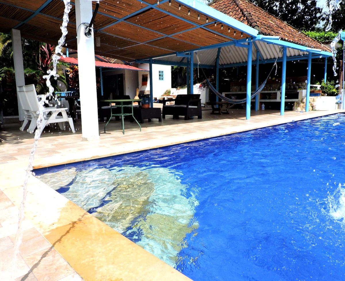 🏡 Encantadora finca privada en Anapoima, perfecta para familias. Ubicada en la vereda Las Mercedes, a solo 10 minutos de la vía principal. Rodeada de montañas, árboles y el agradable canto de las aves, ofrece un ambiente tranquilo para desconectarse, descansar y disfrutar del clima cálido. Ideal para compartir momentos especiales en familia. Tarifa base para 5 huéspedes; y hasta 9 tomando en plataforma las adicionales. No contamos con Planta Electrica.