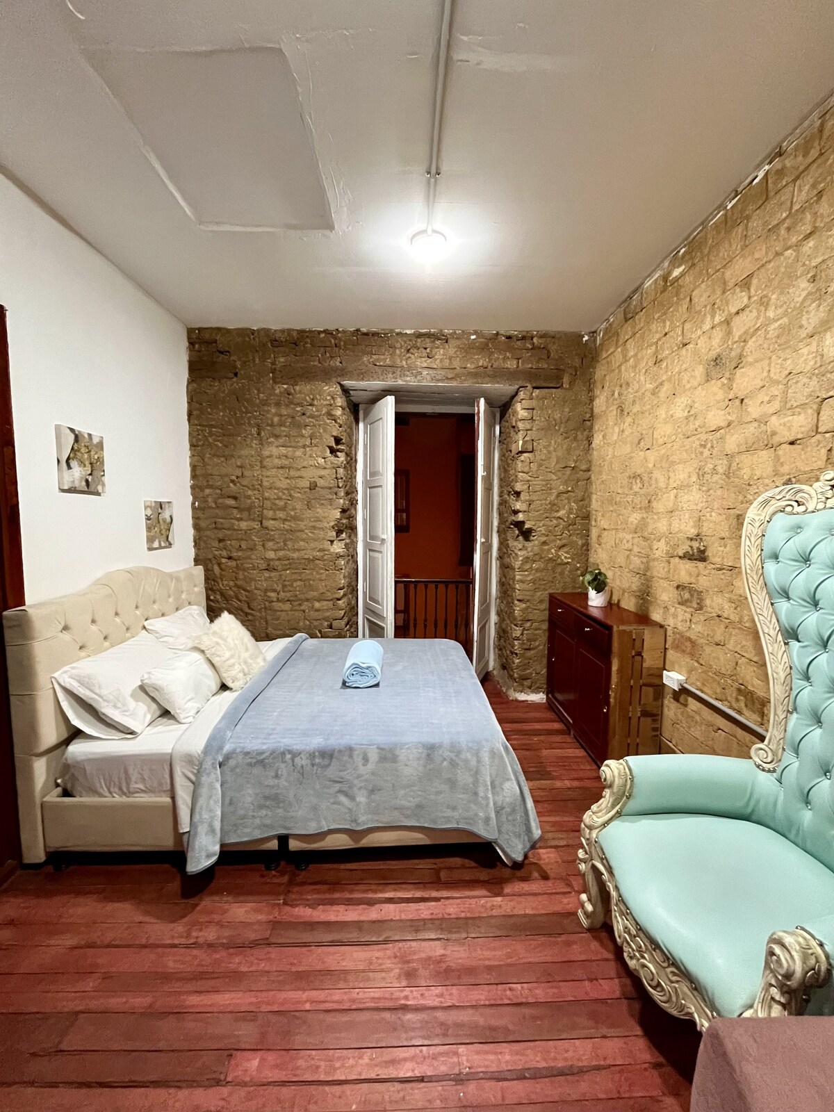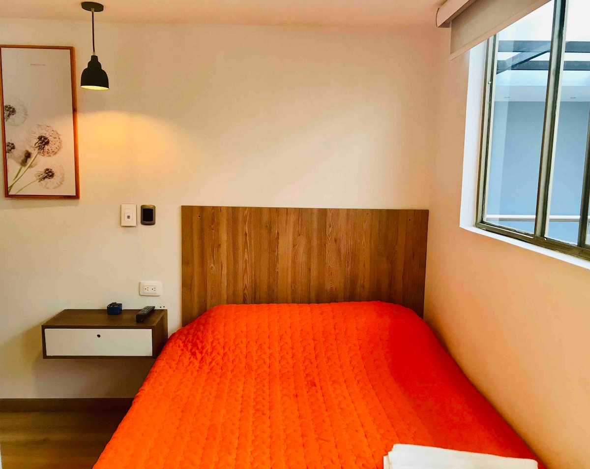 Descansa y relájate en este espacio tranquilo y elegante. Nuestra habitación está situada en el centro histórico de nuestra hermosa ciudad de Tunja. A tan solo 4 cuadras de la Plaza de Bolívar y a 1 cuadra del Parque Santander.