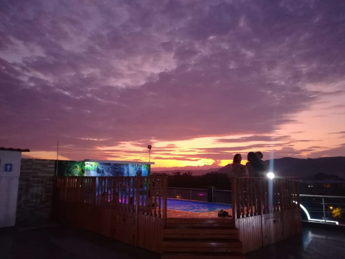 Disfruta de la calidad de este alojamiento tranquilo y céntrico.ubicado en el barrio la colina a 2 cuadras de la carretera principal,con baños privados aire acondicionado wifi pisicina al aire libre bar y restaurante llamado gastro bar donde brindamos músicos en vivo en varios géneros músicales ,en algunas habitaciones tenemos yacuzzy privado con cargos adicionales se mencionan habitaciones deluxe y oro.,en sus áreas socilales hay salon de juegos zona húmeda y spa,