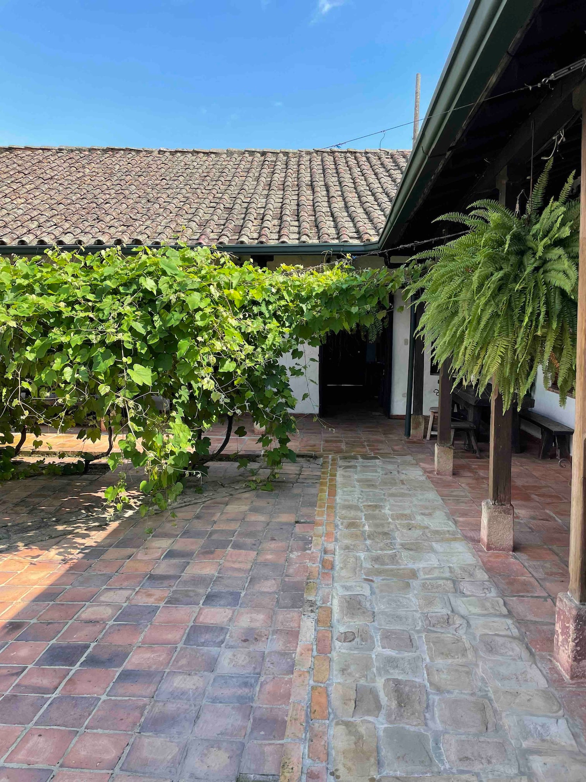 The house is an architectural heritage, its construction dates back 212 years. It has a King Size bed with orthopedic mattress and luxury sheets with feather blankets and heating. It is perfect for families and next to it has a room connected by an internal door that has a double bed. It has a very large private bathroom. We have spaces such as BBQ, lake, campfire area, shuffleboard, frog, jacuzzi (additional payment), Wi-Fi, parking. Located 1 hour from Bogotá with easy access.