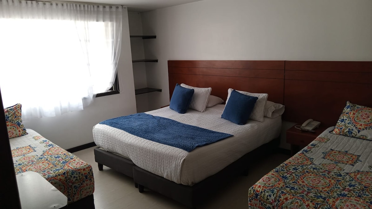 The space is located within 10 to 15 minutes of sites such as the airport, the historic center, the American embassy, the botanical garden, the Virgilio Barco, and several recreational parks and shopping centers. The place has a spacious common area and an elegant reception, each room is completely private with its own bathroom and equipped with all the comforts. We have a very helpful and attentive staff to answer any of your questions. We are waiting for you!