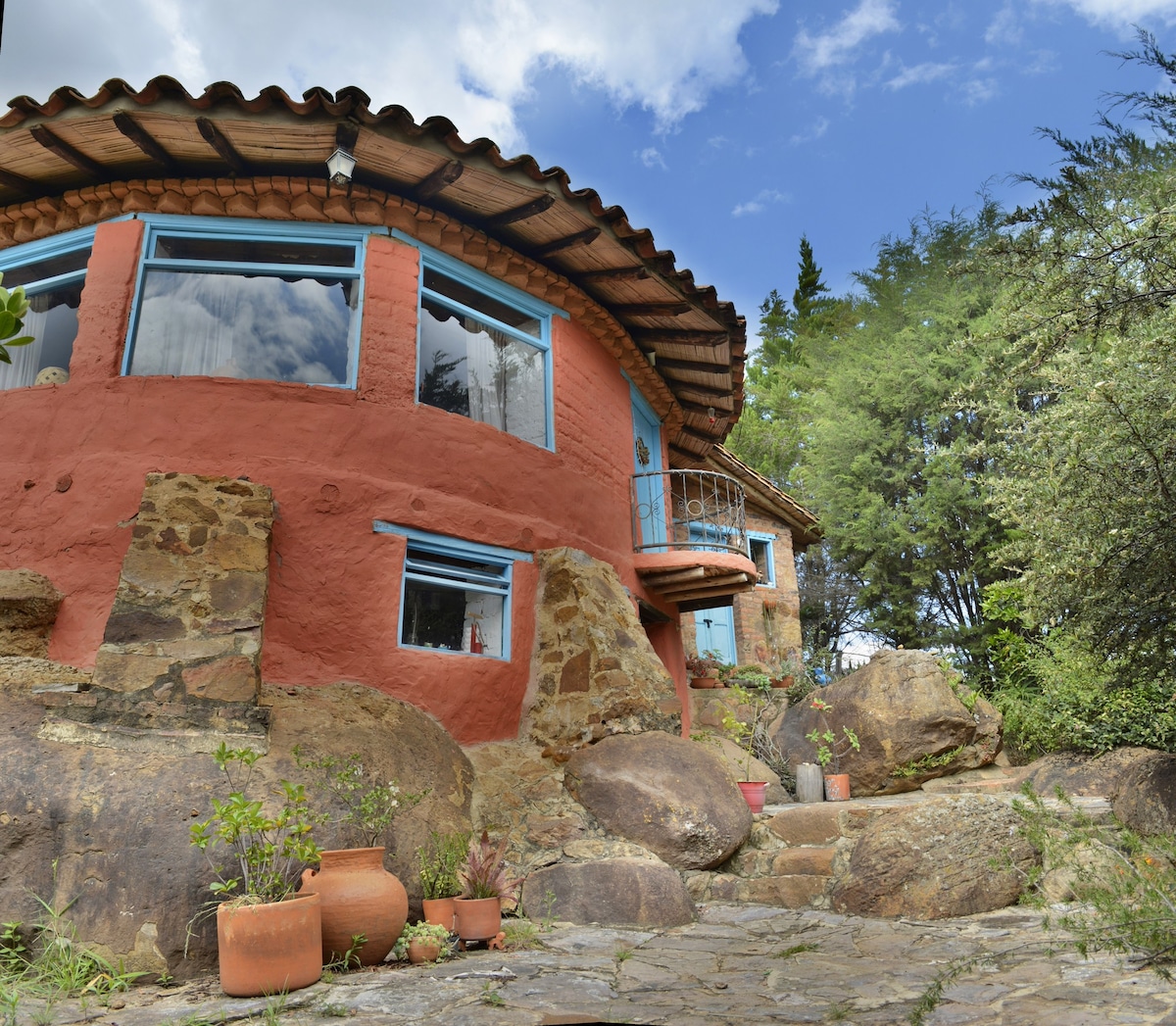 A solo 1 hora de Bogotá cerca de vía a Tunja, disfruta de un lugar único y acogedor inspirado en la filosofía Hobbit, de vida sencilla, básica y feliz. Con detalles particulares como su puerta redonda, su techo cubierto con grama y su mobiliario rústico. Las vistas del lugar son muy especiales y existe la posibilidad de hacer senderismo en los parajes cercanos o de montar en bicicleta. Es ideal para disfrutar de una copa de vino en el quiosco, la mesa externa o en el techo viendo las estrellas.