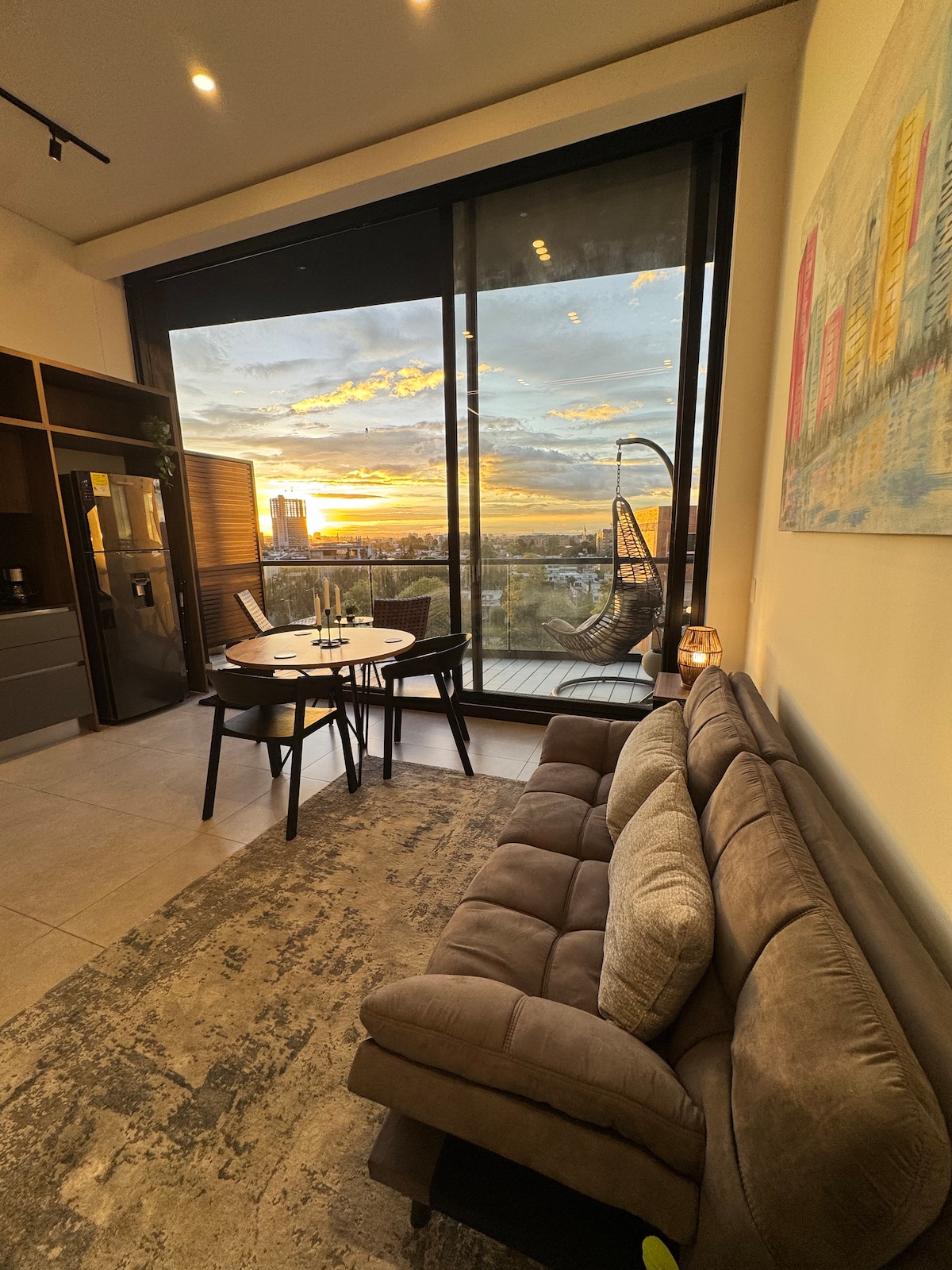 Let yourself be captivated by the serenity of our charming apartment, where the bedroom offers views of a quiet, sunlit street. Featuring a design that seamlessly integrates the living room, kitchen, and dining area into an open and welcoming space, the apartment is known for its warm and bright ambiance. Located just a few meters from the Hilton, JW Marriott, and Four Seasons hotels, in the heart of Quinta Camacho and Zona G, you'll have access to restaurants, cafés, and bars.
