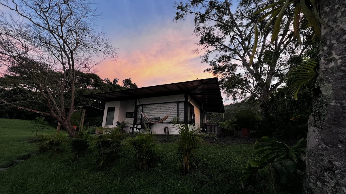 *Cabaña de huéspedes en una zona especial para el avistamiento de aves *Piscina *Capacidad para alojar máximo a 3 personas. Puedes escoger entre 1 cama doble (habitación) y 1 sencilla (sala) o 3 camas sencillas (2 en habitación y 1 en sala). *Ubicada a 1:30 de Bogotá por la vía Medellín - Bogotá (Después De la Vega) * Sala -comedor - cocina amplia, cómoda y completamente dotada para quienes disfrutan preparar sus propios alimentos. *Zonas exteriores con hamacas